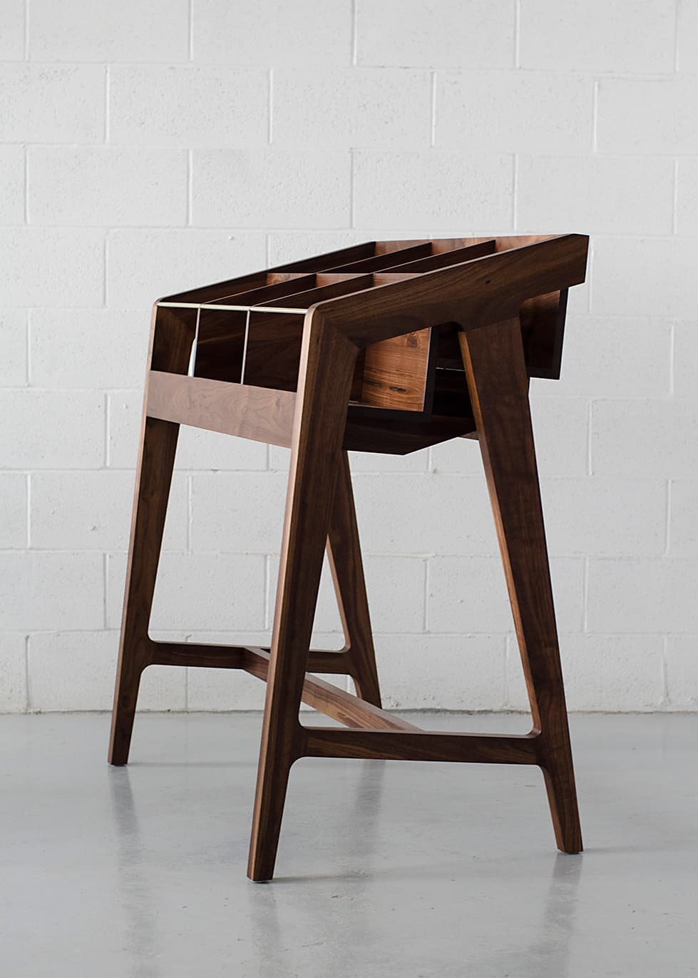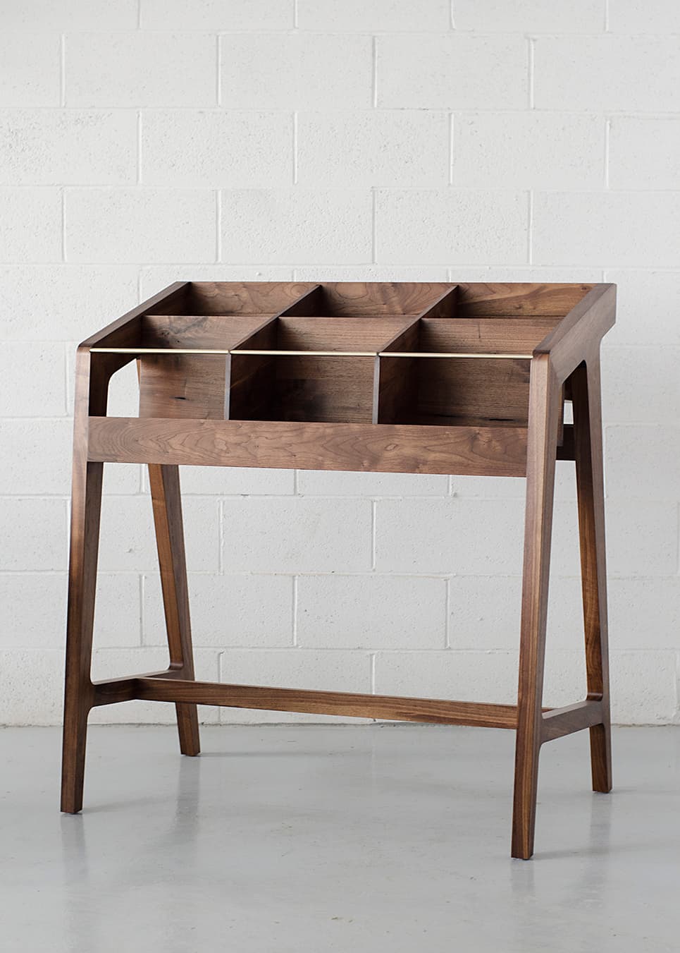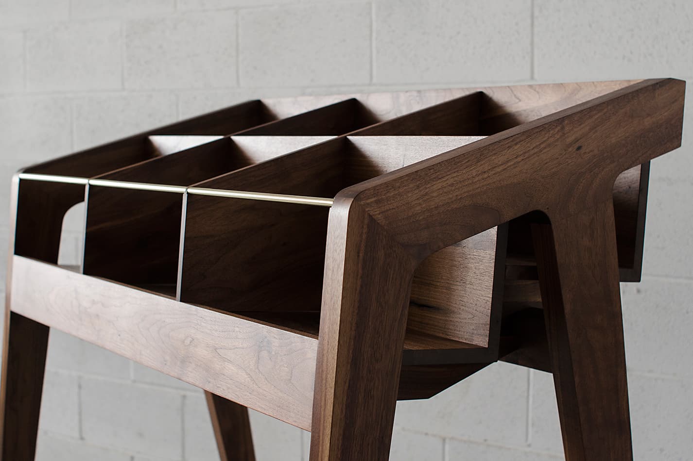 Each compartment is 9" in depth. The shelves are tilted at 6 degrees to ensure secure resting position of records. The number of columns can be modified.